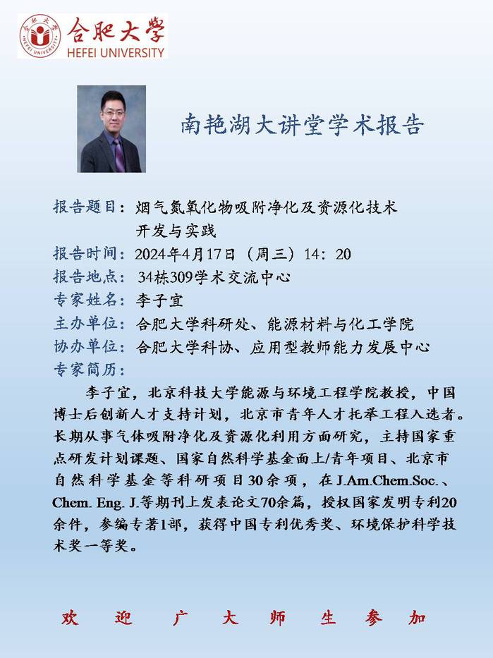 【南艳湖大讲堂】烟气氮氧化物吸附净化及资源化技术开发与实践