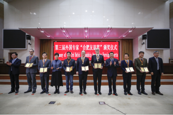 On the morning of December 16, Hefei Municipal Government holds a ceremony of the Third Hefei Friendship Award for foreign experts in Hefei. Yu Aihua, Secretary of Hefei Municipal Party Committee, and Ling Yun, Mayor of Hefei, award medals and honorary certificates to those experts.