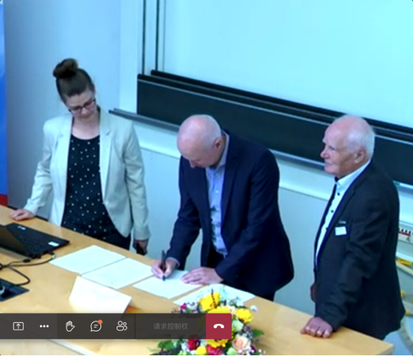 June 10 sees an online conference between HFU and DHIK (Association for International Cooperation of German Colleges and Universities), presided by Hans Wilhelm Orth, DHIK Director of Department of China and Vice President of University of Applied Sciences Lübeck, in which, Wu Chunmei, HFU President, and Dieter Leonhard, Chairman of DHIK, on behalf of both sides, sign a cooperation agreement.