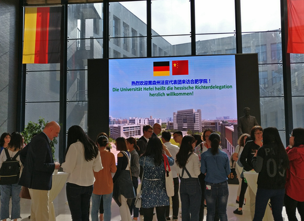On April 23, 2017, Liu Jianzhong, vice president of HFU, hosted a welcome ceremony for Dr. Wilhelm Wolf, the court president of Hessian, Germany, and the Germany judge delegation at the library.