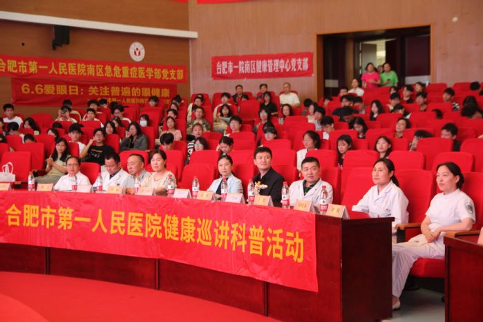 6月6日,学校在图书馆报告厅开展健康科普宣讲活动。合肥市第一人民医院滨湖院区执行院长潘爱红带领专家团队参加活动。脊椎骨科主任杜怡斌介绍了颈椎的结构以及颈椎病的成因、治疗方法和预防措施。心理咨询门诊护士长陈晓菊带领学生学习手指健身操,分享调节情绪的方法。急诊急救护士长刘荆科普心肺复苏急救知识,现场演示模拟心肺复苏的全过程。当天,图书馆一楼大厅还设置了眼科、脊柱骨科、关节骨科、中医科、心理咨询、康复科、消化内科等多个义诊点,为师生提供血压、血糖、视力等多方面的检查及咨询服务。