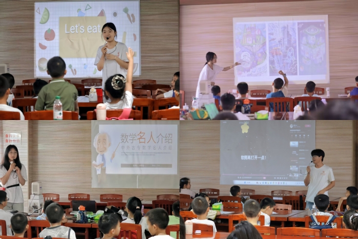 在课堂教学中,志愿者结合专业实际精心设计了多样化的教学策略,通过拓展思维的路径,全面激发孩子们的学习兴趣与探索欲望。德语课堂引入生动有趣的动画短片,将枯燥的德语发音教学变得鲜活起来;数学课摒弃了传统的填鸭式教学,转而通过讲述名人故事的方式,将复杂的数学知识与引人入胜的生平事迹相结合,拉近了孩子们与数学世界的距离;心理课堂特别设置了时间管理课程,引导孩子们学会合理规划时间,提高学习效率。团队坚持以学生为中心、注重思维培养的教学模式受到了小朋友和家长们的一致好评。