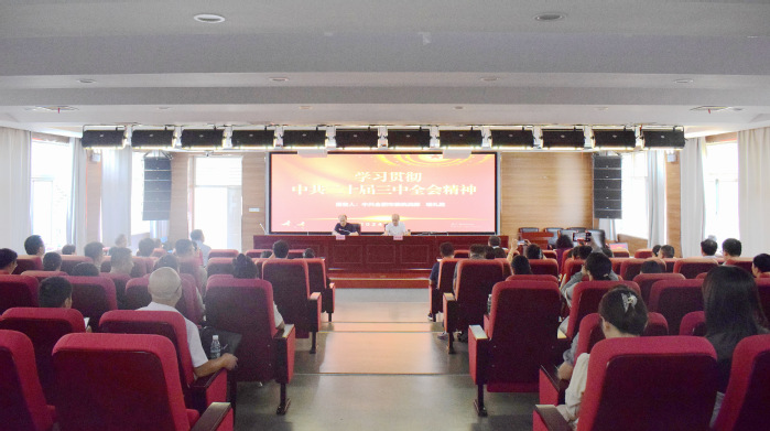 8月30日,学习贯彻党的二十届三中全会精神“举旗帜·送理论”示范宣讲活动在我校一期六栋报告厅举办。市委统战部副部长喻礼胜作宣讲报告。我校党委委员、宣传统战部部长贾峰,全市教育系统党外知识分子和民办高职院校党组织书记、党务工作者共70余人参加。