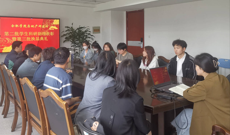(合肥学院房地产研究所第二批学生科研助理表彰暨第三批换届典礼正在举行)