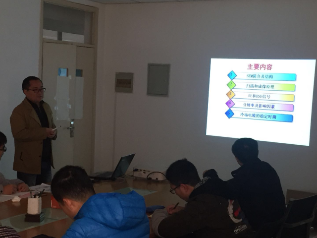 此次培训主题是扫描电镜结构原理及操作应用技术,内容分为五大部分:扫描电镜简介及电镜结构、扫描和成像原理、二次电子和背散射电子信号、分辨率及影响因素、冷场电镜的稳定时期及其优势。会员们对冷场发射扫描电子显微镜有关知识感兴趣,进行了认真的听讲与详细记录。
