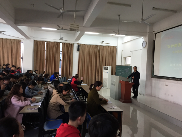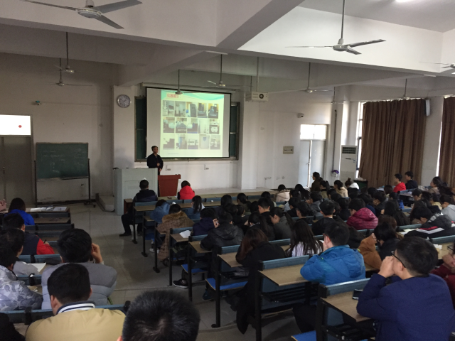 2017年11月23日下午2:00在37-2JT教室,我校化学与材料工程系、生物与环境工程系2016级学生180余人参加了分析测试中心举行“分析检测之家”首届招募会员的宣讲会。分析测试中心杨本宏主任、赵茂俞副主任、徐泽忠老师、陈仕云老师、王玮老师、化工系辅导员吴云、生物系辅导员陈静怡出席了宣讲会。