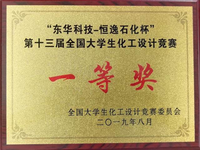 2019年“东华科技-恒逸石化杯”第十三届全国大学生化工设计竞赛总决赛近日在山西太原中北大学成功举办。我校化工工程师之家两支队伍全部获奖,其中“风雨兼程”团队获得全国一等奖,“有酯者”团队获得全国二等奖。这是参赛10年来第5次进入全国总决赛、第4个全国一等奖,体现了化工工程师之家坚持不懈、顽强拼搏的精神。