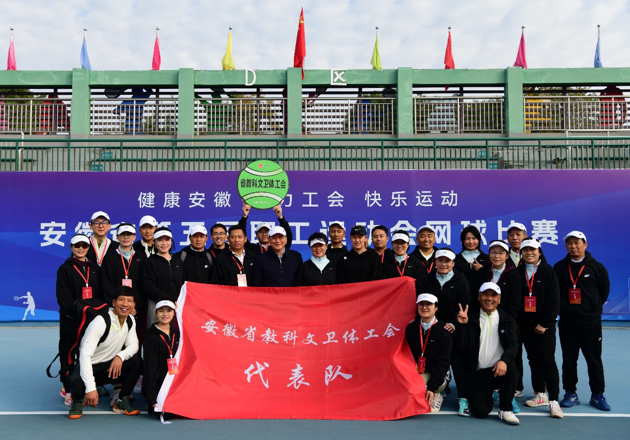 11月8日至10日,安徽省第五届职工运动会网球比赛在我省六安市安徽小球训练基地举办。我校教职工姜阳老师入选安徽省教科文卫体工会代表队,出战乙组中年男双网球比赛,并获得第七名的良好成绩。