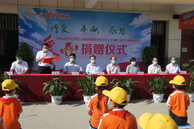 为了让留守儿童也享有同样美好的童年,6月1日下午,安徽省教科文卫体工会对阜南县老观乡中心学校(小学部)留守儿童帮扶捐赠仪式在老观乡中心学校举行。阜南县教育局党组林刚同志、老观乡党委副书记王世轩同志、教育局工会主席王伟等同志出席捐赠仪式。