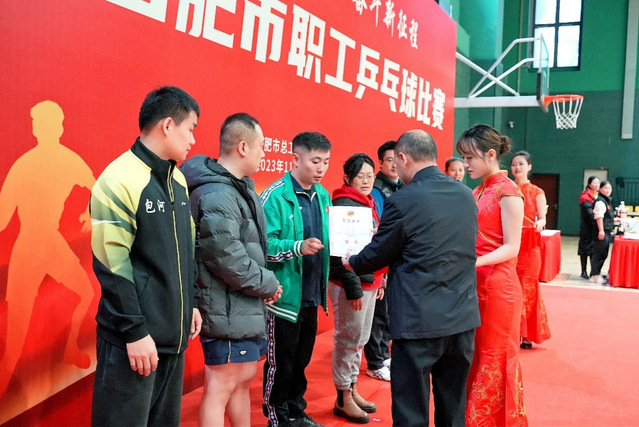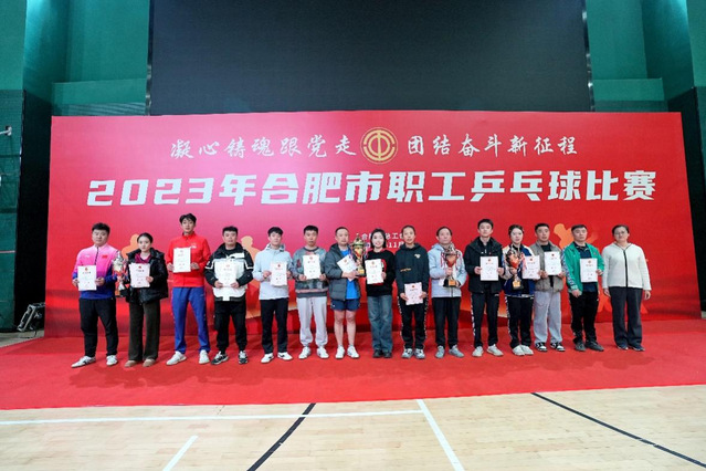 11月29日-30日,由合肥市总工会主办的2023年合肥市职工乒乓球比赛在合肥市职工体育活动中心德仁综合体育馆举办。本次比赛竞赛项目分为混合团体赛、男子单打和女子单打,由各县(市)区、开发区总工会,各产业、直属工会,各相关单位组成的19支队伍200余名职工参加,为期两天的赛程紧张而激烈。各参赛队伍秉持“友谊第一、比赛第二”的体育精神,在团结友爱的氛围中,充分展示各自的实力。最终,经过激烈的比拼,各项目决出名次。