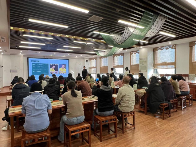 活动伊始,旅游与会展学院教师袁梦如的主持下,活动顺利拉开序幕。首先合肥学院工会主席宣文受邀上台致辞,对教职工茶文化协会的建立表达祝贺与支持。随后朱砚文老师与全校协会成员分享生活茶事美学,阐述了茶的历史、发展和现状,介绍茶的分类,六大茶类的特征,六大茶类的工艺三个部分。