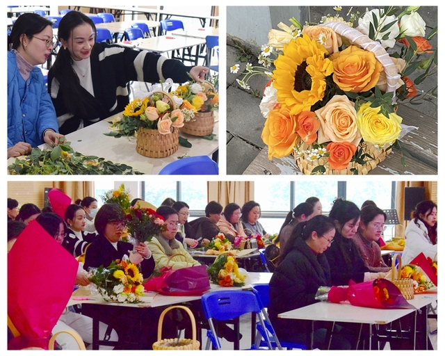 教职工活动室里,校工会主办、经济与管理学院分工会承办的“魅力巾帼 花漾年华”主题插花活动正在如火如荼的举行。活动现场,花艺师向大家介绍了鲜花的品种并详细讲解了插画的技巧与方法。教职工们充分发挥创造力,用灵巧的双手完成了一束束插花作品,营造了浓厚的节日氛围。