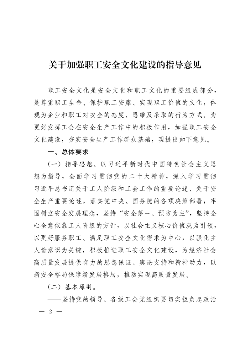 中华全国总工会办公厅印发《关于加强职工安全文化建设的指导意见》的通知