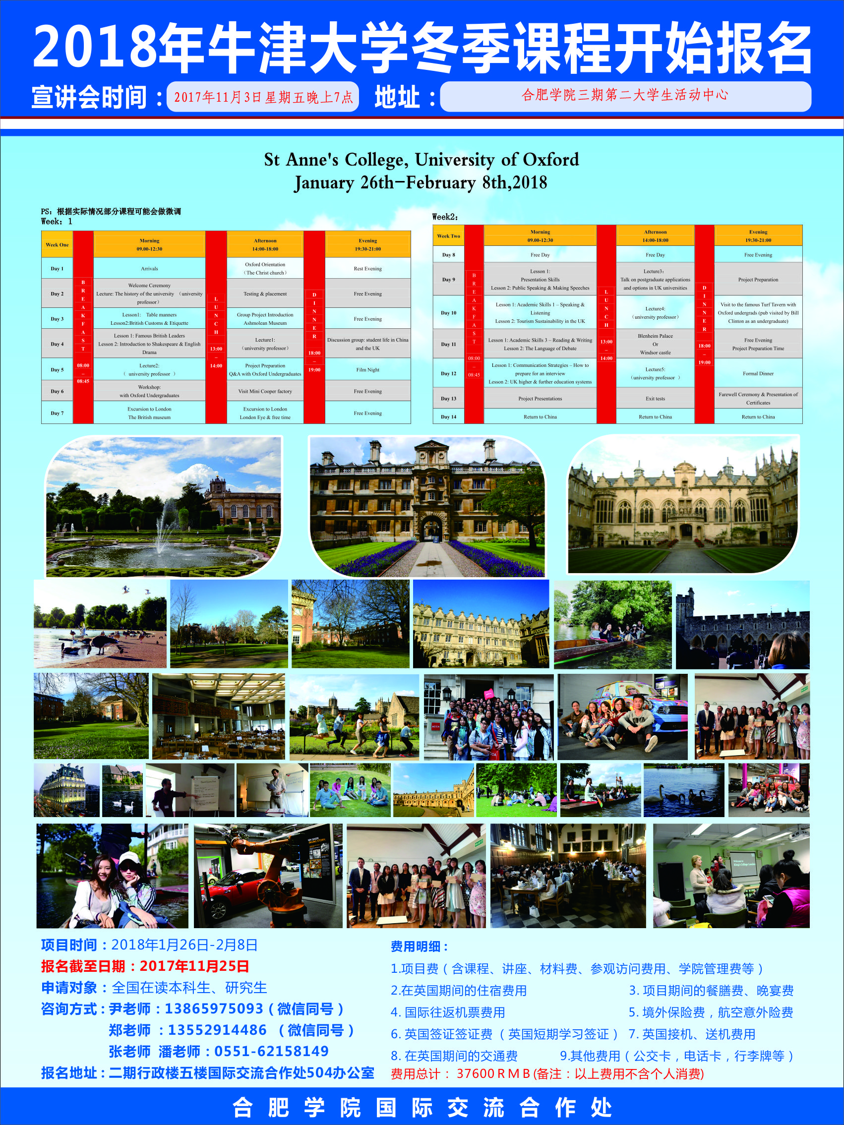 1.参加课程的学生们将居住在牛津大学历史悠久的学院中,一日三餐将在古朴典雅的学院餐厅中享用;