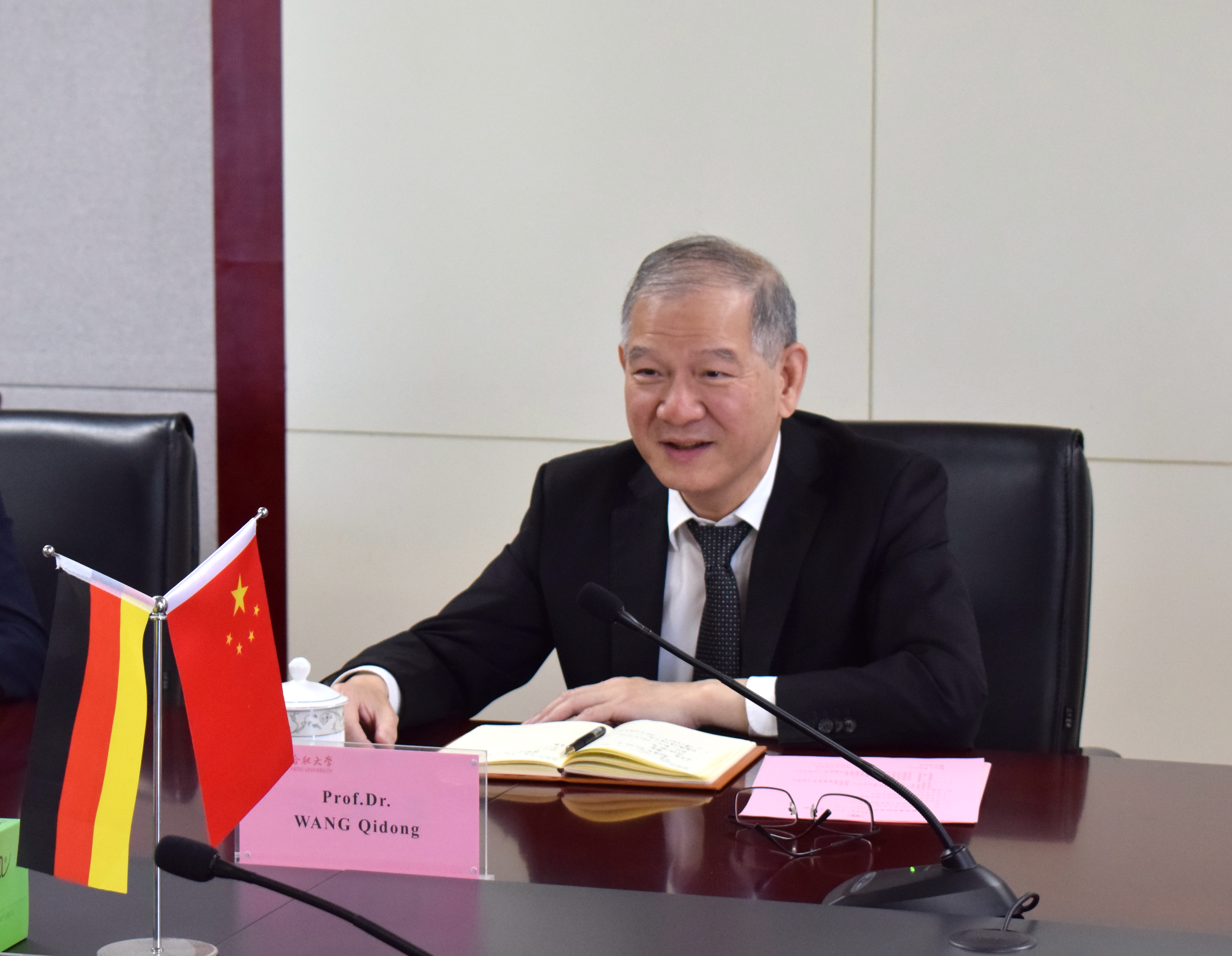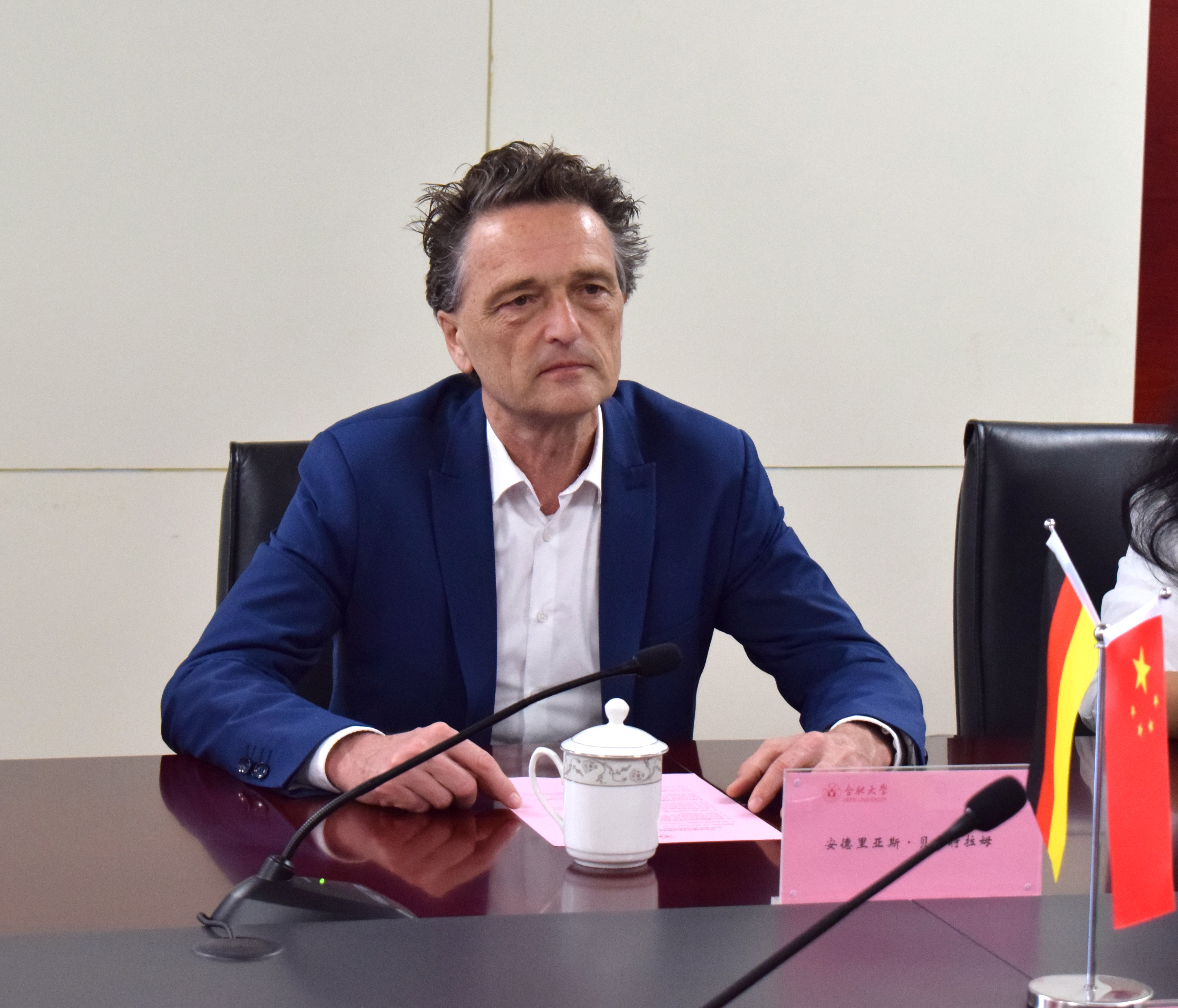 王其东对安德里亚斯•贝尔特拉姆一行来访表示热烈欢迎,他简要介绍了学校近年来的发展情况,他表示,两校之间长期以来保持密切交流合作,两校合作共建的物流管理专业与信息与计算科学专业、合作举办的中德应用型高等教育研讨会、合作编辑出版的《应用型高等教育研究》等重要平台已经成为连接两校的关键桥梁和重要纽带。希望双方进一步深化合作,开设更多丰富的交流课程,促进教育深度融合发展。陈秀表示,希望两校未来携手开展更深入的学术交流活动,充分利用双方优质的教学资源,共同培养高素质应用型、国际化、复合型人才。