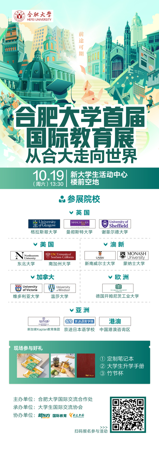 为进一步推动学校国际化发展工作,拓展学生国际视野,学校将举办第一届国际教育展。此次展会将邀请多家海外知名院校参展面对面为学生解答关于海外高校招生录取、专业选择、海外学习生活等问题具体事宜通知如下: