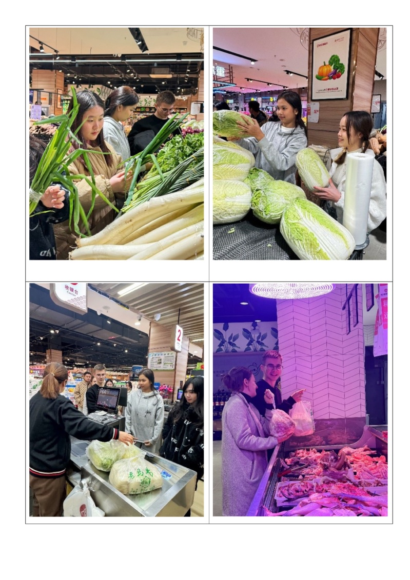 下午2点,留学生们与社区志愿者一同前往附近的超市采购食材。在超市里,留学生们不仅学习到了如何挑选新鲜的蔬菜和肉类,还体验了中国式的购物文化和人际交往方式。他们与志愿者们亲切交流,分享着各自国家的节日习俗和美食文化,增进了彼此之间的了解和友谊。