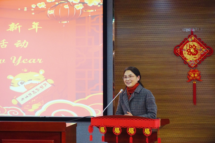 陈秀提到,这是第二次与大家一起共迎新春,感到非常高兴。虽然同学们因为疫情无法回国,但是合肥学院就是大家的家。在这个大家庭里,同学们在感受着传统的新年气氛,感受学校的发展、中国的发展,同时学校也在积极利用各种手段进行教学,让境内外的学生学有所成。陈秀督促在校的同学们抓紧寒假这段宝贵的时间,总结学习成果,查缺补漏。同时加强交流,加强了解,为实现自己的理想做好规划。