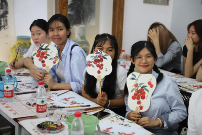 在安徽省博物馆,留学生们仔细了解安徽历史人文的发展历程近距离欣赏传统的安徽建筑之美,尽情感徽州古建筑的魅力同时留学生们还近距离欣赏精微工巧的中国古代工艺珍品——金银器、漆器,工匠们巧夺天工的工艺技术赞叹不已。在溢清书画院,留学生对中国的书法艺术有了全面而直观的认识及感受,与国画老师面对面学习传统小写意《荔枝图》,尝试绘制团扇,感受中国传统艺术的魅力。