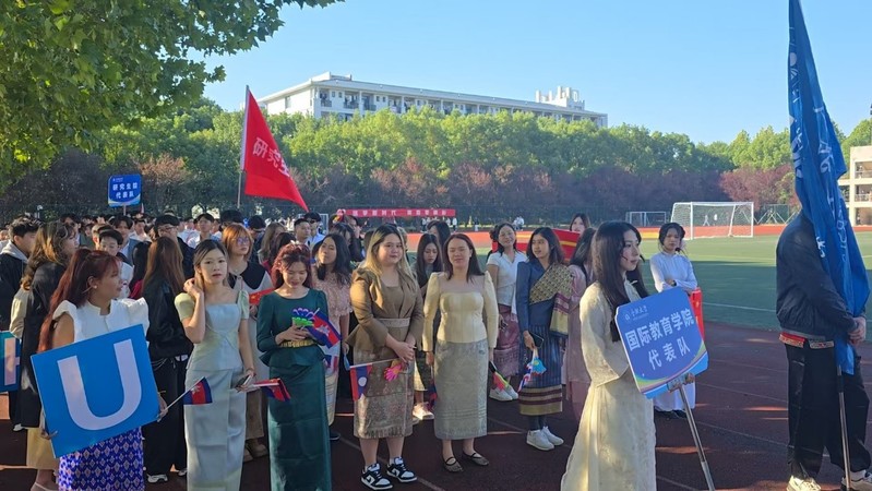 随着方阵有序退场,留学生们的入场任务圆满完成。从前期排练时的反复磨合,到现场分毫不差的整齐步伐,每一步都凝聚着团队的用心与汗水。这份跨越语言障碍的高效协作,为本次运动会注入了独特的国际活力,也让国际学子的青春风采在运动场上绚丽绽放。