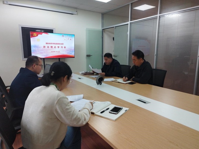 3月28日上午,国际教育学院直属党支部召开政治理论学习会议,集中传达学习了习近平总书记在中央政治局第十二次集体学习时的重要讲话精神,传达学习了习近平总书记在湖南考察和主持召开新时代推动中部地区崛起座谈会上重要讲话精神,传达学习了《教育部办公厅关于进一步压实高校师德师风建设主体责任的通知》等。学院全体在职人员参会,会议由支部书记方宗保主持。
