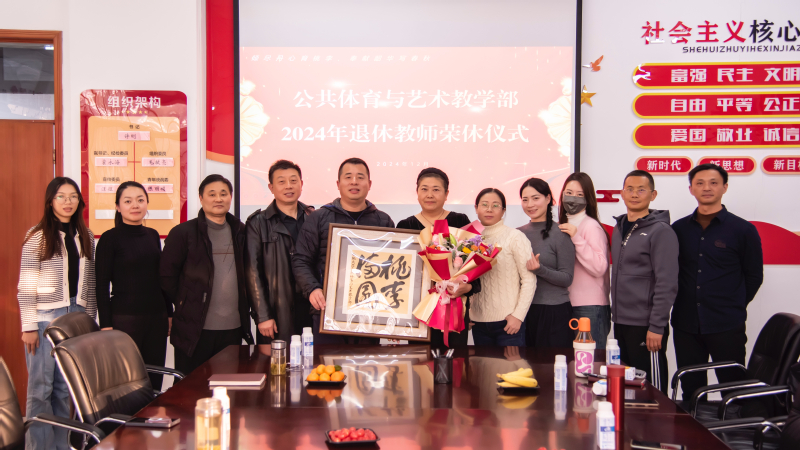 许刚在总结发言再次肯定了汪老师多年来热心执教、恪尽职守、无私奉献的职业精神,感谢其对教学部教书育人的突出贡献,并希望汪老师能继续关心和支持学校和部门的发展,为学校建设特色鲜明的高水平大学贡献智慧。活动最后,部门为汪老师颁发荣休纪念品,并合影留恋。这一温馨而感人的场面激励着全体教职工不忘初心、砥砺前行。体艺部举办此次荣休仪式,旨在弘扬尊师重教传统,构建新时代尊师文化,传递师德力量,增强教师教书育人的责任感和荣誉感,为学部发展注入强大的精神动力。(撰稿:欧阳井凤 初审:毛献亮 复审:霍永海 终审:许刚)