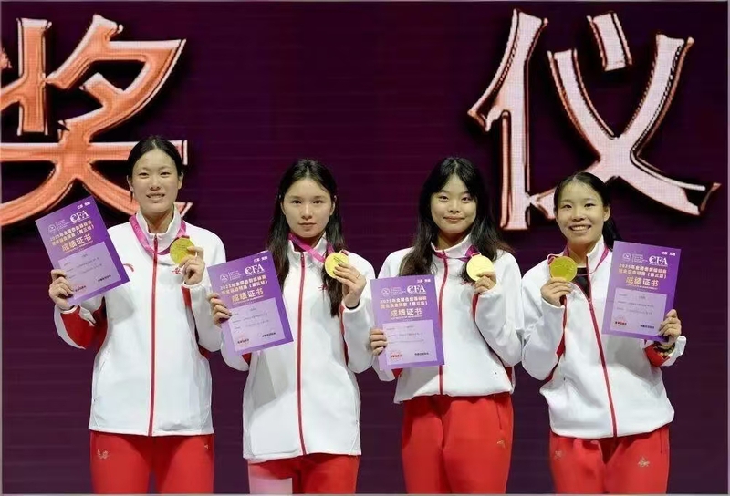 9月6日,2025年全国击剑锦标赛暨全运会预赛第三站将江苏省无锡市惠山区全民健身中心举行。在女子重剑成年组团体决赛中,我校优秀学子唐君瑶同学,在比赛中发挥出色,与队友默契配合,勇夺团体赛冠军,为学校和安徽省赢得了荣誉。
