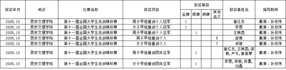 2005年合肥学院体育俱乐部改革指导学生获奖一览表