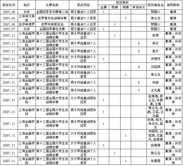 2007年合肥学院体育俱乐部改革指导学生获奖一览表
