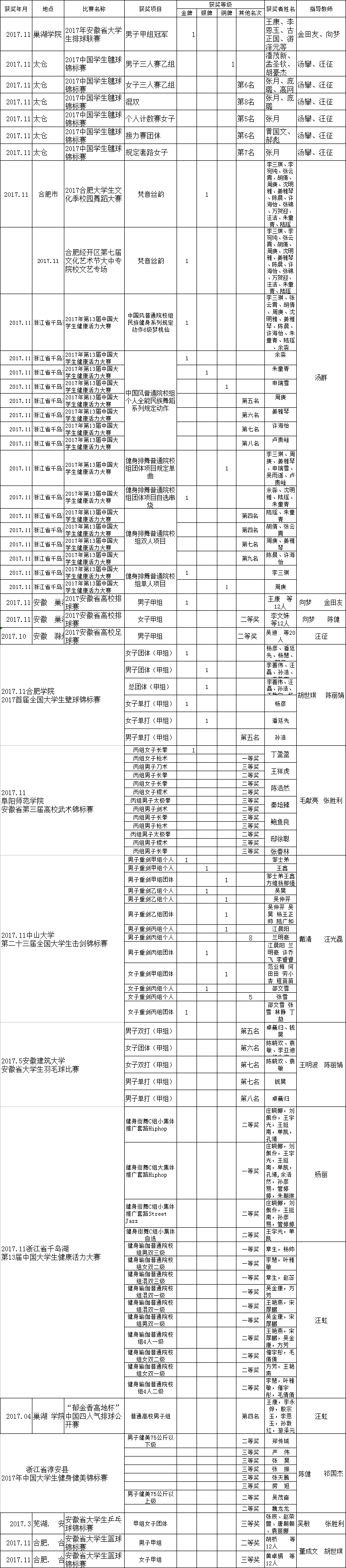 2017年合肥学院体育俱乐部改革指导学生获奖一览表