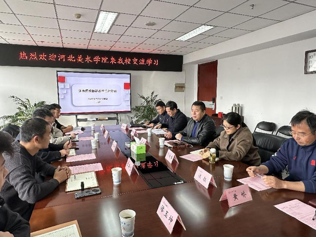 1116,河北美术学院财务处处长赵德君一行来合肥学院进行调研,会议在行政楼第六会议室举行。体艺部主任、直属党支部书记许刚、教务处副处长项响琴、财务处预算管理科科长费维斌参加座谈交流,会议由许刚主持。