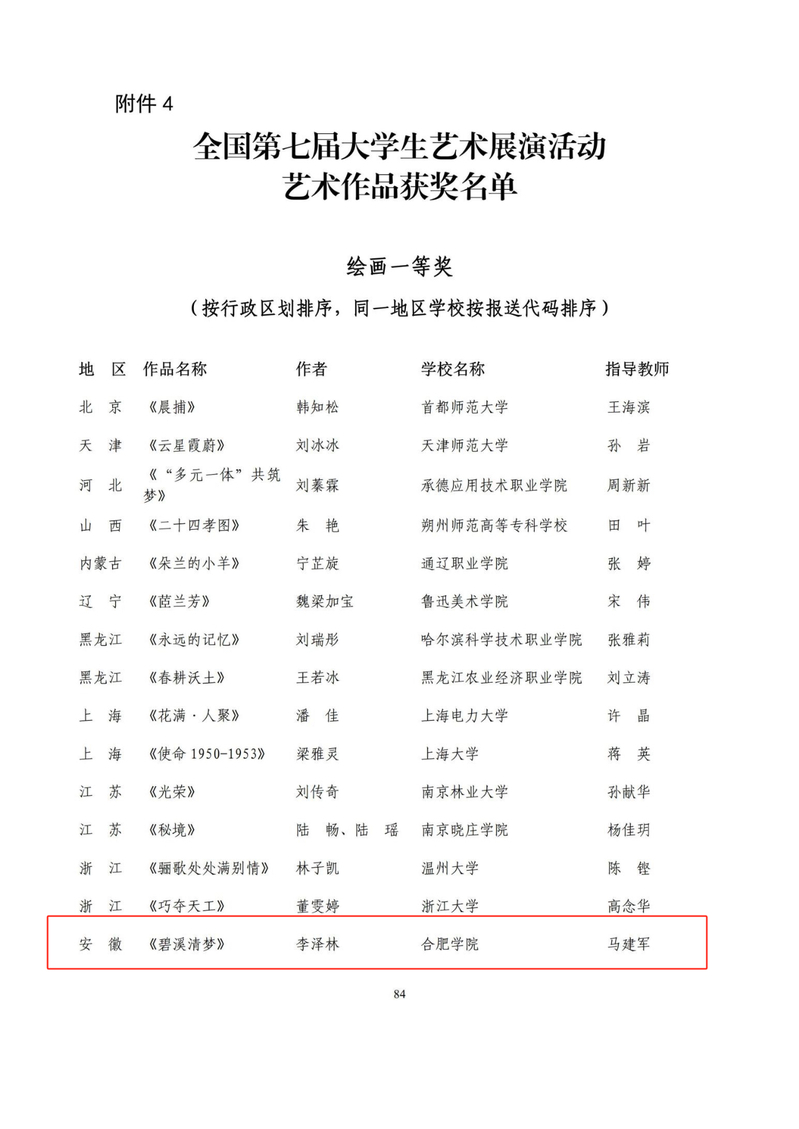 611日,教育部公布全国第七届大学生艺术展演活动各项目评选结果,我校选送的艺术类作品《碧溪清梦》荣获国家级一等奖,这既是我校在全国大学生艺术展演活动上取得的最好成绩,也是我校美育工作一次历史性突破!