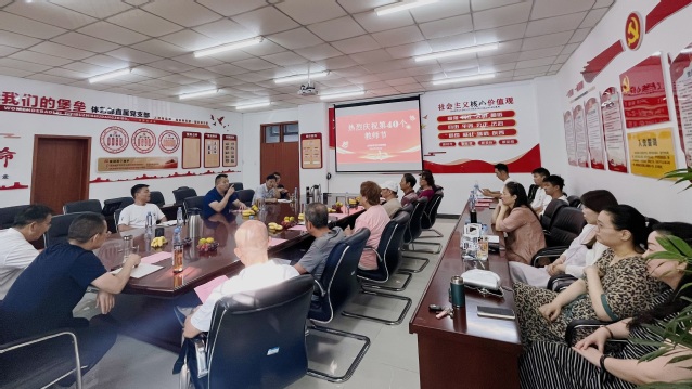 为深入学习贯彻党的二十届三中全会精神,贯彻新时代党的教育方针,落实立德树人根本任务,认真学习领会习近平总书记关于教育的重要论述和关于教师节的重要讲话精神,大力弘扬教育家精神,99日下午,体艺部在22栋一楼会议室开展庆祝第四十个教师节座谈会。退休教师代表和部门全体教师参加活动,座谈会由体艺部主任许刚主持