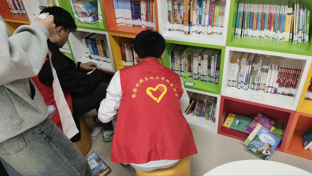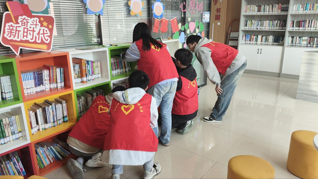 2024年11月6日下午两点半,在朝霞居委会内,能源材料与化工学院学生会志愿团联合学生第三党支部组织的6名同学对朝霞居委会新购置的图书进行了整理,为居委会提供了一个有序、整洁的阅读环境。