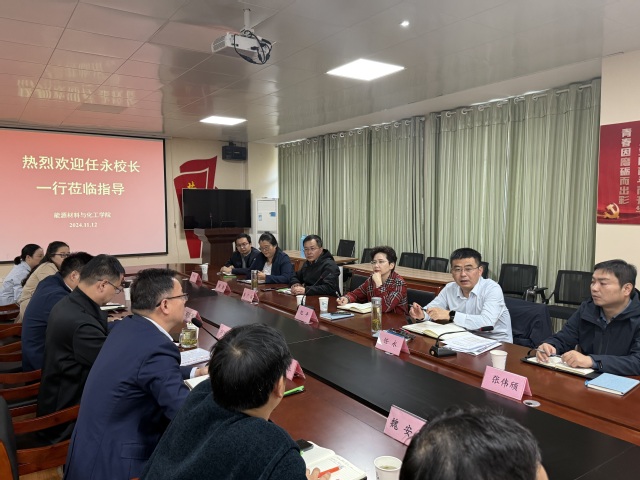 任校长在听取汇报后,对学院的工作给予了充分肯定。他指出,能源材料与化工学院基础较好,未来可期,全院上下要树立领跑意识。学院要重视和加强人才引进工作,坚持高标准高起点,要在“引、育、用、稳、管、服”几方面下功夫。科研方面要加强跟大院大所的联系和合作。任校长强调,能源材料与化工学院具有广阔的发展前景和巨大的发展潜力,学院要进一步明确发展目标,加强内涵建设,聚焦学科前沿,加强科研创新,形成自己的亮点和特色,更好地服务于高素质应用型人才的培养。