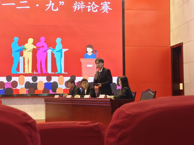 代表我院出战此次辩论赛的胡涛、赵文武、胡致远以及潘晨曦四位同学,在比赛伊始,便即刻全身心投入状态,旋即与对方辩手展开了极为激烈的交锋。