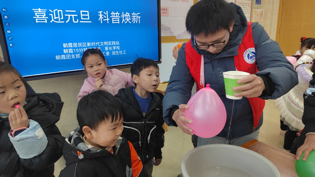 科普课堂结束后,志愿者带领小朋友们进行了趣味小实验,加深小朋友们对静电现象的理解。在实验过程中小朋友们积极参加,在志愿者的帮助下小朋友们也亲自做了静电小实验。现场氛围十分活跃,志愿者与小朋友们打成一片。