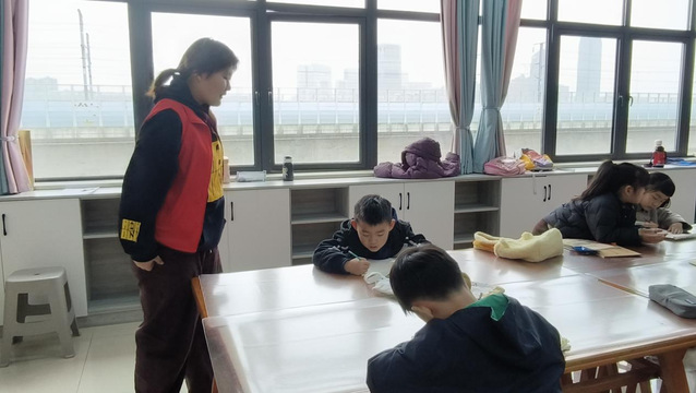 上午,志愿者们在社区教室为孩子们签到,确保每位孩子按时参与活动。书法课堂上,他们不仅协助老师维持秩序,还积极与孩子们互动,耐心指导书写技巧,营造出浓厚的学习氛围,让原本略显枯燥的书法课变得妙趣横生,极大激发了孩子们对书法的兴趣。