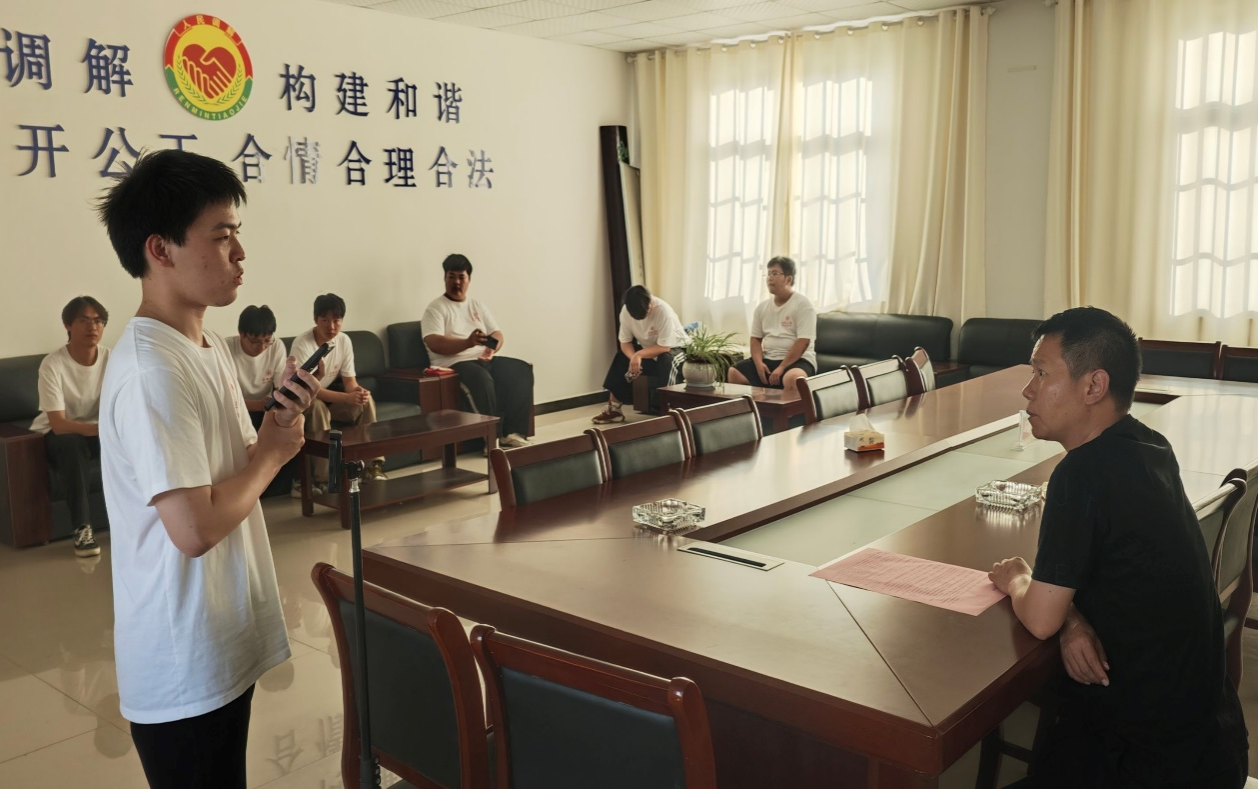 ▲图为团队成员访谈何家坊村村党委书记伍三江