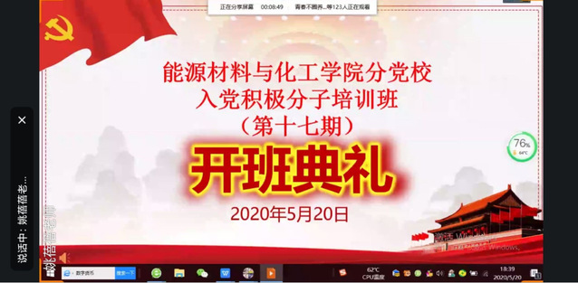 为深入学习贯彻习近平新时代中国特色社会主义,同时响应防控新冠肺炎疫情期间“停课不停学”的号召,能源材料与化工学院分党校第十七期入党积极分子培训班于2020520日晚上六点半在QQ教室顺利开课。此次授课由培训班班主任姚蓓蓓老师主讲,参加本次线上学习的共有129名学员。