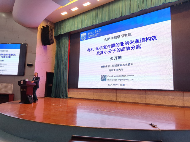 202110月12日上午9点,南京工业大学化工学院教授、材料化学工程国家重点实验室常务主任、“973”首席科学家、国务院特殊津贴获得者、英国皇家化学会会士、全国“黄大年式教师团队”负责人金万勤老师,在校图书馆学术报告厅 A厅面向全校青年教师和研究生,作题为“有机-无机复合膜的亚纳米通道构筑及其小分子的高效分离”的学术报告。合肥学院能源材料与化工学院院长董强教授主持了报告会。