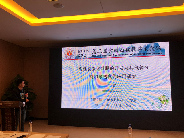 会议期间,10月24日上午,能源材料与化工学院青年教师王青以“高性能碳化硅膜的开发及其气体分离和渗透汽化应用研究”为题,在黄山市屯溪区会议酒店新安江大厅面向全体与会代表做20分钟的口头报告,报告现场气氛热烈,专家点评、听众与报告人问答等等互动环节引来教师和学生的阵阵热烈掌声。