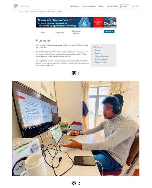 能源材料与化工学院的研究生Narendra Basel代表合肥学院参加本次会议,并通过大会组委会的选拔,以学生身份获得Membrane Desalination 2021 (MEMDES2021)论坛的15分钟口头发言时间。该生以“Ultrafast sieving of dye with in-situ generated covalent organic frameworks layer on PAN mixed matrix membrane (MMMs)”为题,向参会代表重点介绍了纳滤脱盐的试验结果和研究进展,并现场回答澳大利亚和泰国学者关心的学术问题。受到新冠肺炎疫情的影响,本次国际会议(图1和图2)全部由线下转为线上举行,国际期刊“膜科学”共同主编Wang Rong女士和期刊“脱盐”共同主编He Tao先生参与并线上主持本次会议。