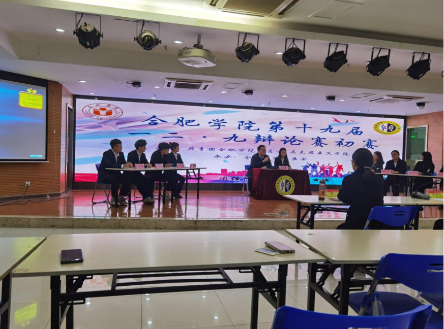 2021年11月11日晚7:45,合肥学院第十九届“一二·九”辩论赛初赛于三期大学生活动中心一举行。本次比赛由能源材料与化工学院对战口才与辩论励志协会,辩题为“德云女孩现象是传统相声的复兴还是衰落”。辩论赛评委有马克思主义学院李继友老师、苏冰老师和学生处黄锐老师。我院辩论队成员有“一辩”20粉体班孙舒涵、“二辩”21化工2班林世涛、“三辩”20粉体班鲍海洋、“四辩”20无机非班朱海涛。