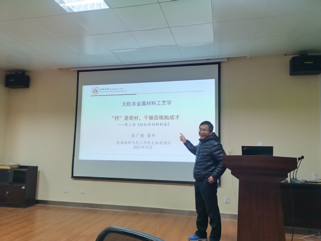 秦广超教授围绕“'钙’是奇才,千锤百炼始成才”为主题展开,讲授《无机非金属材料工艺学》课程思政设计,将教学内容与国家战略需求和粉体材料制备技术以及绿色安全生产融为一体,实现激发学生创新意识和专业兴趣,提升学生专业素养、创新能力和使命感的育人目标。在思考总结中,秦教授将专业知识学习与品质素养培养相结合,提出“德高于才、敬天爱人”的思想,鼓励学生通过自己的“千锤百炼”努力,成为“盖世奇才”。