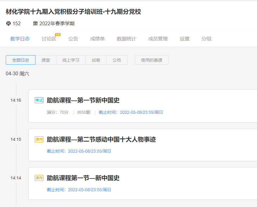 迄今为止,本次授课具体内容主要围绕着党史、党章、党纪、领导机构、工作条例、党旗党徽以及先进典型事迹等方面已经展开了六期教学。