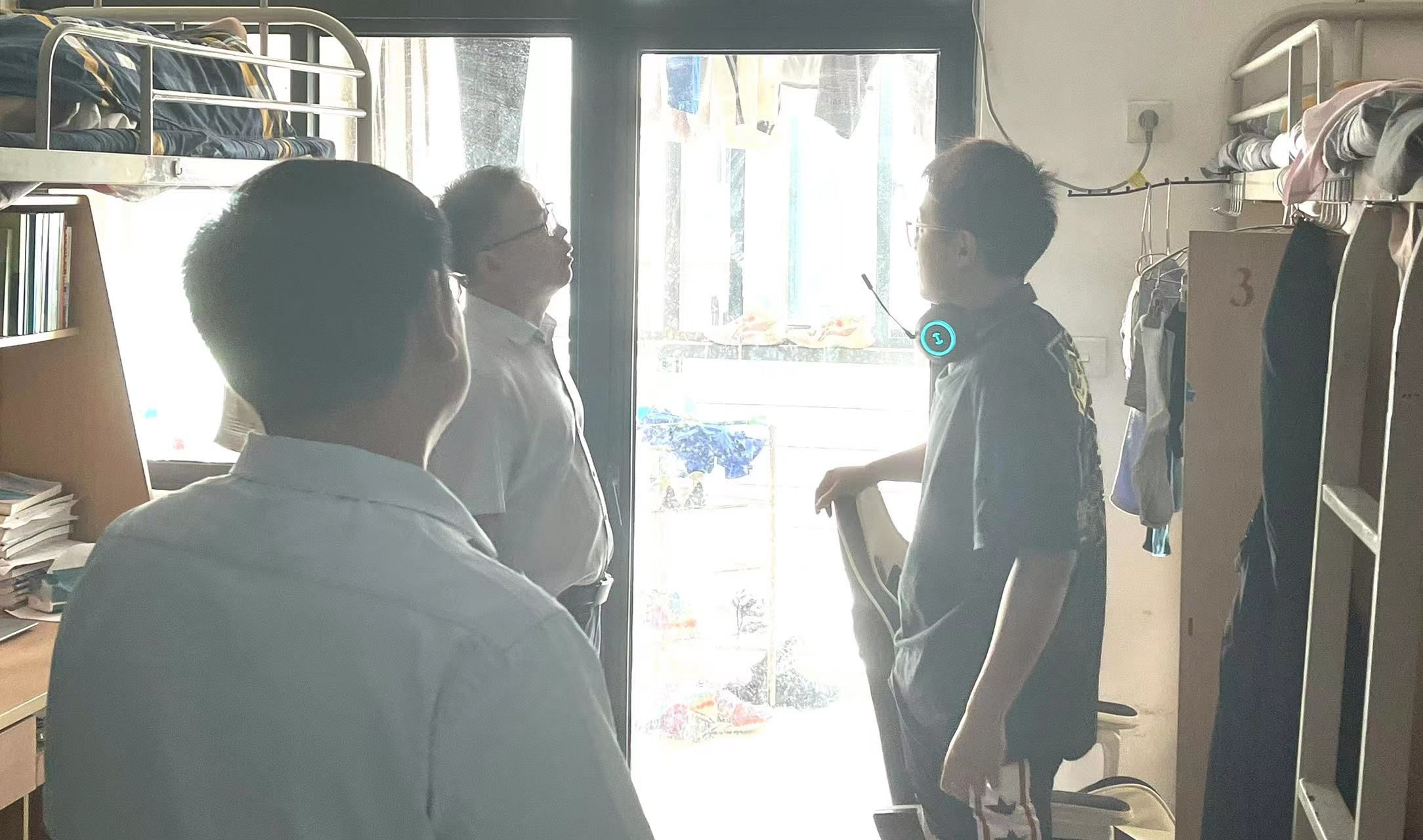 学院领导们分组对学生宿舍进行检查。对宿舍安全隐患进行全面排查,重点检查用电、用水的安全以及卫生情况。经检查发现大部分宿舍的总体情况良好,地面无杂物堆积,房间干净整洁,物品摆放有序,但是,有个别宿舍存在乱扯插线板、宿舍电源箱电线裸露等安全问题。对此学院领导们提出整改措施,要求相关宿舍立即整改,共同爱护宿舍环境。