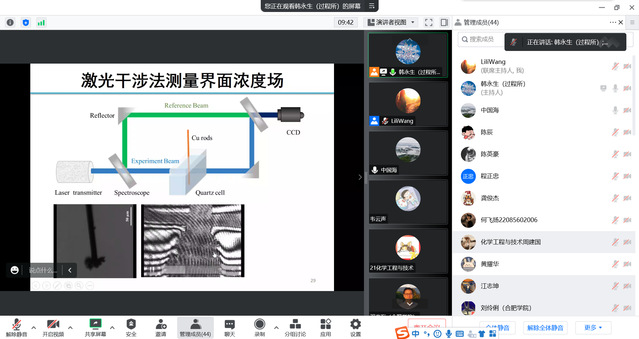 20221115日,应能源材料与化工学院邓崇海副院长邀请,中科院过程工程研究所韩永生研究员与我校师生开展线上学术交流。此次会议,材化学院部分研究生与青年教师在学院会议室集中观看,其他师生通过腾讯会议进行线上直播观看。