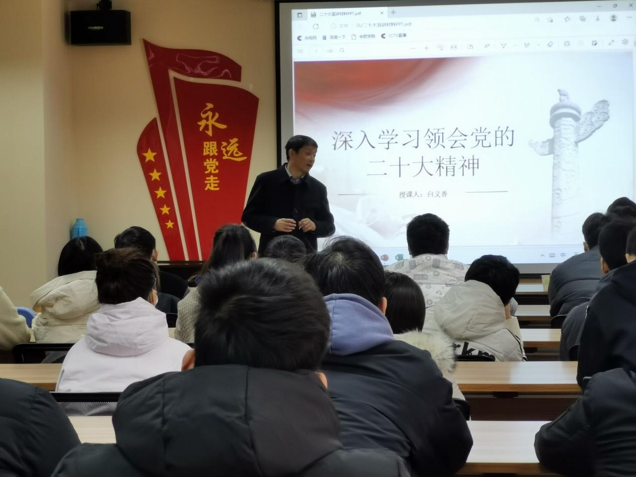 党的二十大召开以来,学院党委坚持把学习宣传贯彻党的二十大精神作为当前和今后一个时期的主要政治任务。为积极响应党中央与学校党委关于学习贯彻落实党的二十大精神相关部署,121日,于生化楼三楼学术交流中心,组织部部长白义香以“深入学习领会党的二十大精神”为主题,给材化学院第三党支部学生党员和全院新发展党员上了一堂生动的党课,院党委书记刘沛平、副书记魏安乐和全体辅导员参加学习。