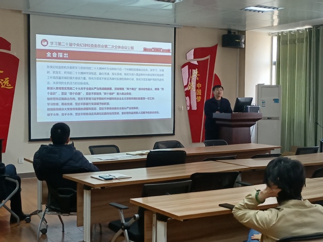 会上,魏安乐同志领学了习近平总书记在二十届中央纪委二次全会上的重要讲话精神和会议公报内容。一致认为,习近平总书记的重要讲话从新时代新征程党和国家事业发展全局的高度,深刻分析了大党独有难题的形成原因、主要表现和破解之道,深刻阐述了健全全面从严治党体系的目标任务、实践要求,并对坚定不移深入推进全面从严治党作出了战略部署,具有很强的政治性、指导性、针对性,为加强全面从严治党提供了根本遵循。